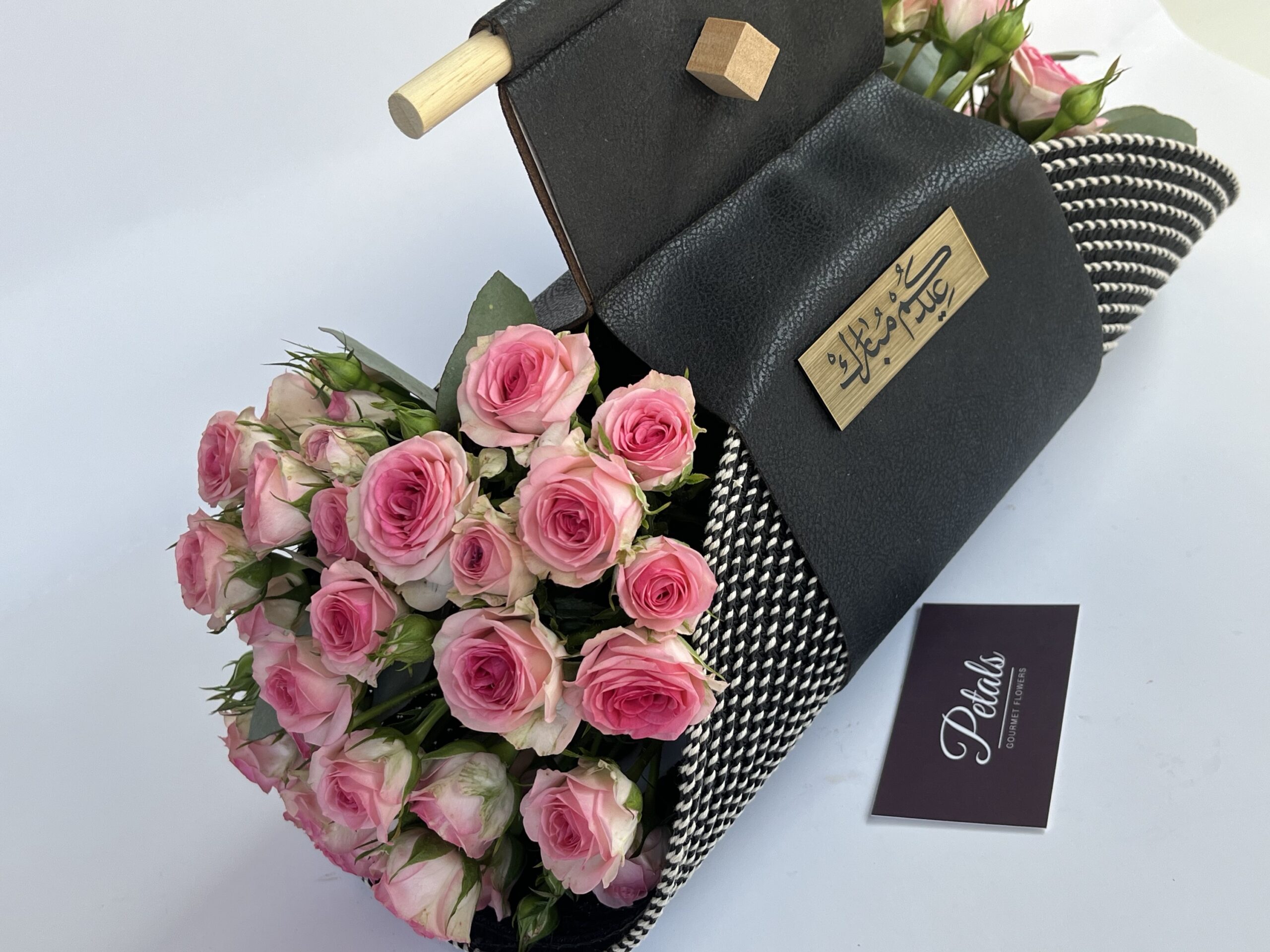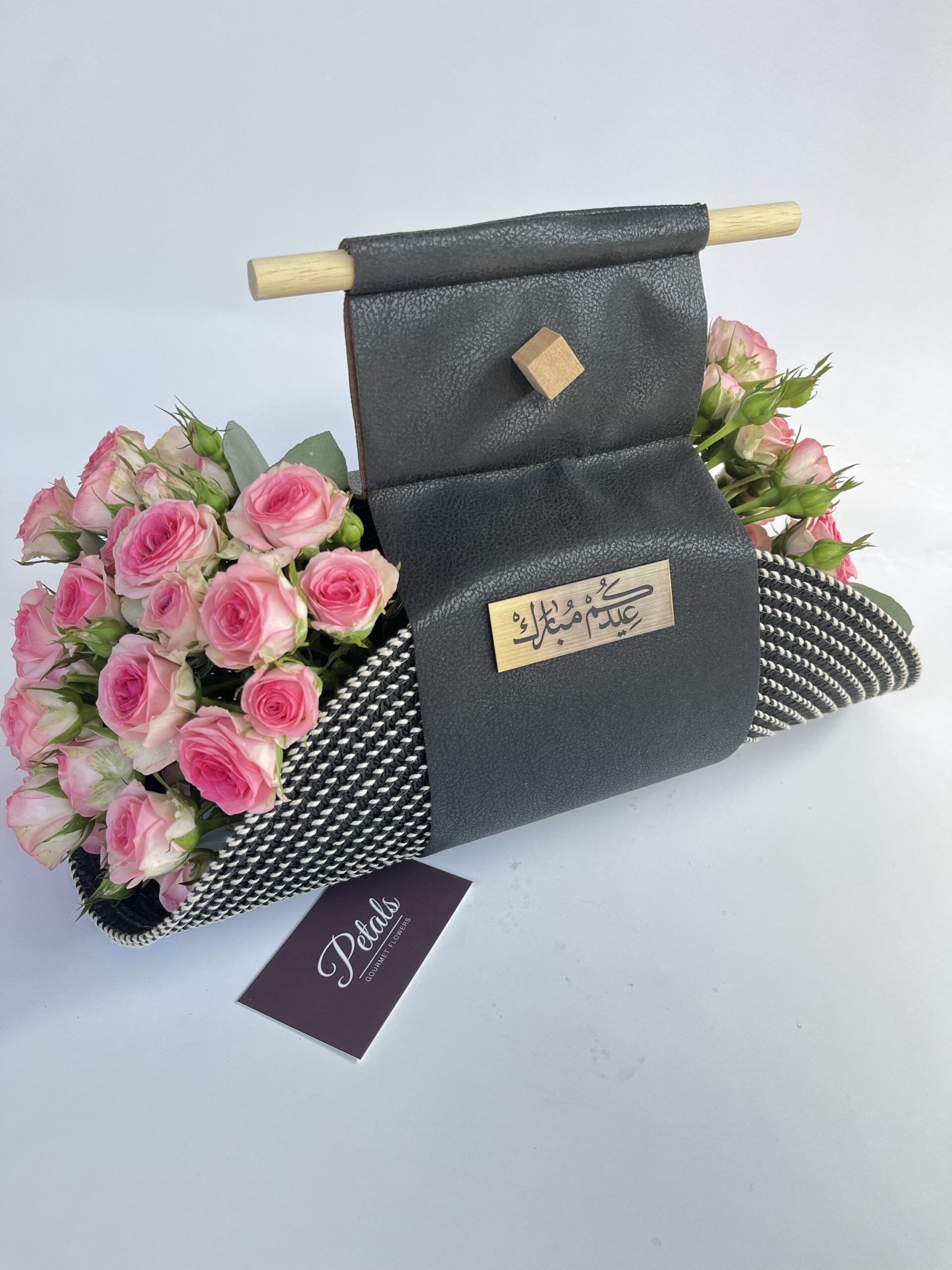 Celebrate Eid with elegance and sophistication with our Bespoke Eid Floral Carrier, a stunning floral arrangement presented in a luxurious handcrafted carrier. This exclusive design blends tradition with modern craftsmanship, making it the perfect gift for loved ones.
